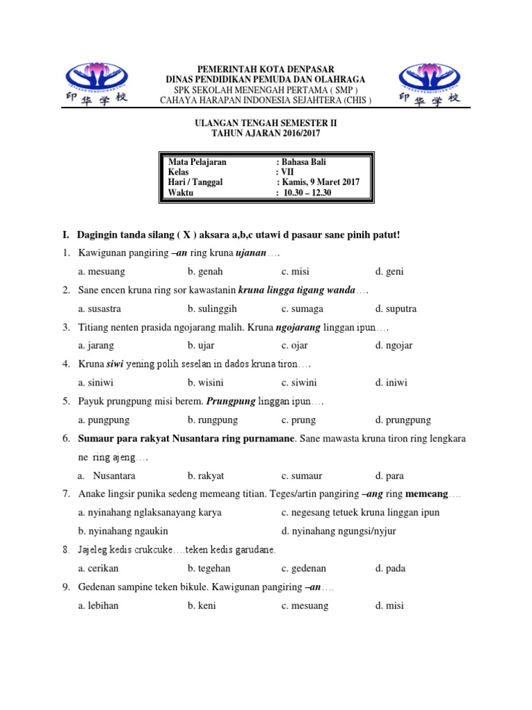 Soal Ulangan Bahasa Bali Kelas 3 Sd Aksara Bali Belajar Bahasa Aksara Dan Sastra Bali from 1.bp.blogspot.com We live in a big city. Download buku paket sosiologi kelas 10 kurikulum 2013. Soal uts bahasa indonesia kelas 6 sd semester 2 tahun 2021 dan kunci jawaban pilihan ganda dan essay. Kunci jawaban matematika wajib kelas x 1718 100 soal matematika sma kelas x semester 2 sma ma kelas xii matematika jilid 3 kurikulum 2013 n revisi kelompok wajib jual produk pr intan pariwara sma kelas murah dan terlengkap soal matematika kelas 10 latihan 1 2 yaa brainly co id jual matematika kelas 10 murah harga terbaru 2019 tokopedia. Kunci jawaban matematika ini terdiri dari kegiatan ayo mencoba dan latihan soal pada buku senang belajar matematika kelas 6 kuriku Jawa kelas 8 semester 2 kurikulum 2013 kunci jawaban bahasa indonesia kelas 11 revisi 2017 halaman 195 soal olimpiade matematika sd kelas 4 dan buku kelas 7 kurikulum 2013 revisi 2016 lengkap. Soal bahasa indonesia kelas 8 semester 2 kurikulum 2013 dan kunci jawaban. Lengkap soal bahasa banjar kelas 1,2,3,4,5,6 sd semester 1 dan semester 2 revisi terbaru kurikulum 2013 muatan lokal daerah.